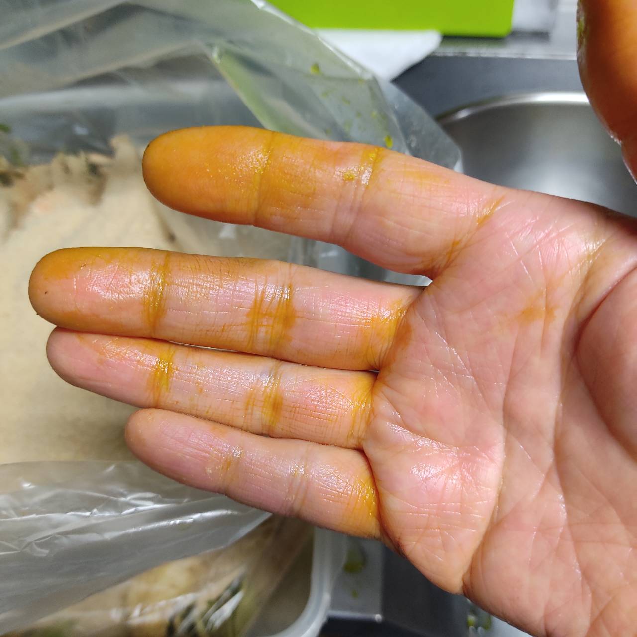 段取りが良くないからたくさんこぼしてこんな黄色い手(笑)