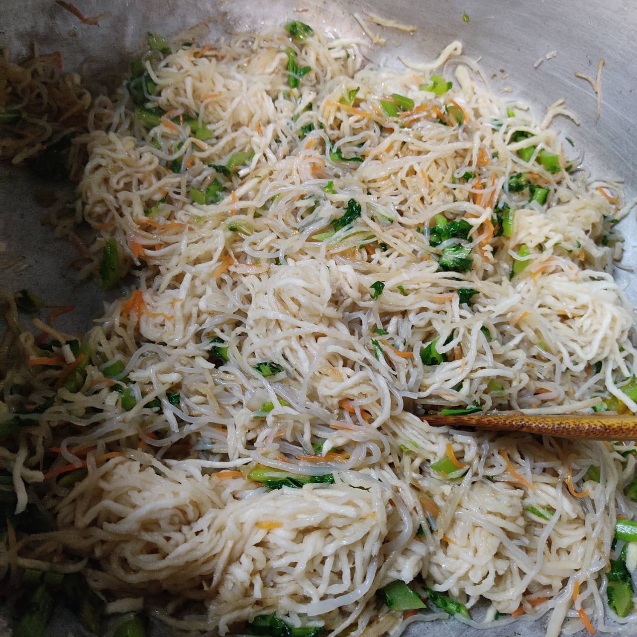 人参、大根菜、白滝、牛蒡を加え軽く煮た。